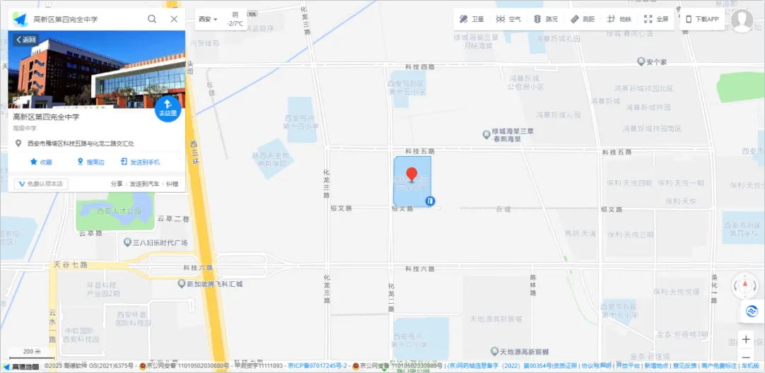 学校地址:西安市高新区科技五路与化龙二路交汇处。