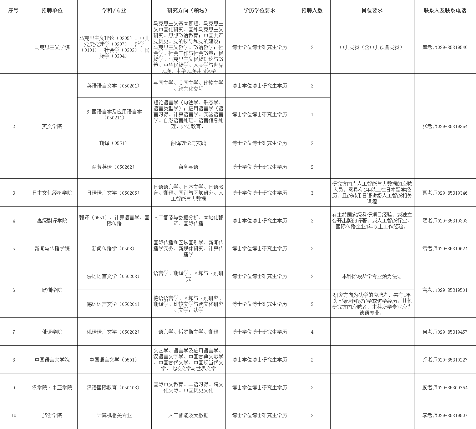 (一)联系地址:陕西省西安市长安区文苑南路西安外国语大学人力资源部