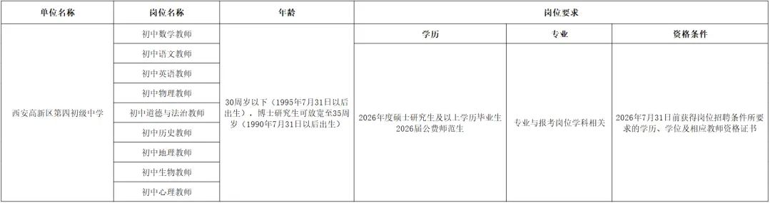 原标题:【创新四初】广纳贤师 共育桃李——西安高新区第四初级中学面向2026年应届毕业生公开招聘公告