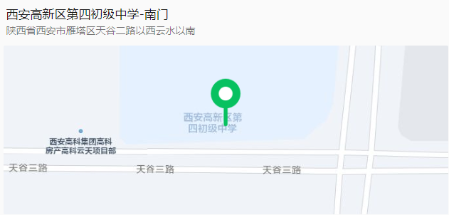 西安高新区第四初级中学(西安高新一中第一分校)是由西安高新区管委会创办、西安高新一中教育集团统一管理的一所公办初级中学。学校地处西安高新科技产业发展中心—丝路软件城,总占地面积65.5亩,建筑面积5.15万平方米,规划办学规模36个班,1800个学位。
