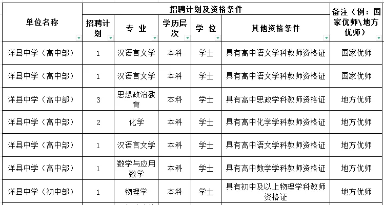 为实现教育高质量发展目标,优化教师队伍结构,满足学校拔尖创新人才培养与学科建设需求,结合办学实际需求,经上级教育部门审核批准,根据教师招聘相关规定,现将洋县中学2026年教师招聘计划公告如下: